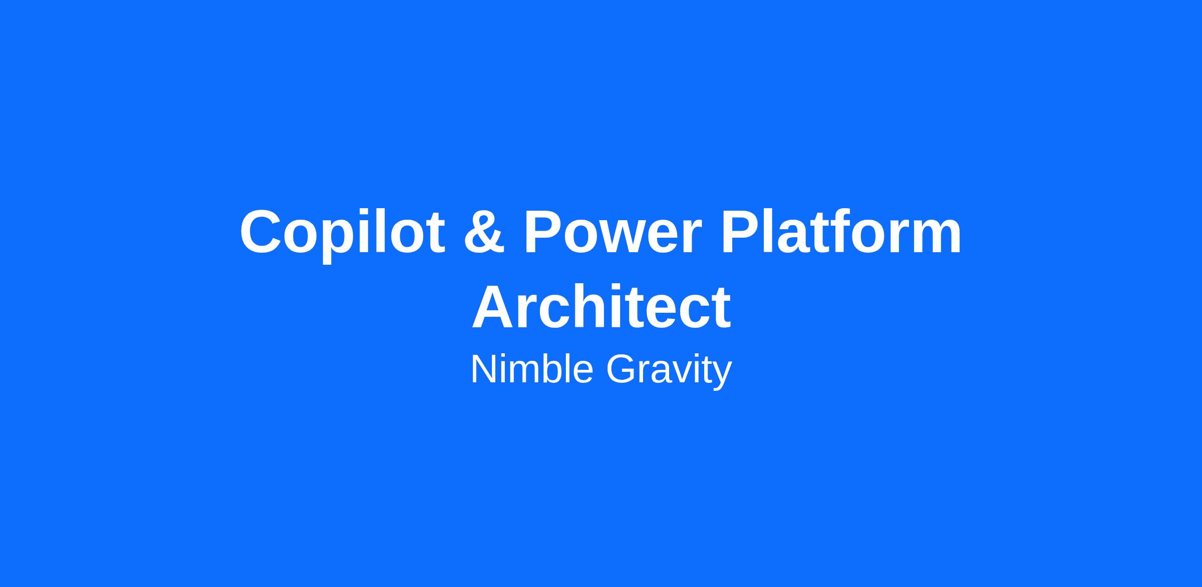 About the RoleNimble Gravity is looking for a Copilot & Power Platform Architect to lead the design and delivery of enterprise automation and AI-enabled solutions for our clients.This is a client-facing consulting role where you'll own the technical architecture end-to-end: from discovery and stakeholder workshops through build, governance, and deployment. You'll architect Copilot Studio agents and Power Platform solutions that integrate seamlessly into Microsoft 365 environmentsรขยยwhile ensuring the governance, security, and ALM practices needed to scale.This role is approximately 80% client delivery, with opportunities to shape internal standards (10%) and support pre-sales solutioning (10%). You'll collaborate with data engineers, AI specialists, and delivery leads who share a bias toward shipping high-quality work that creates real value.What You'll DoArchitecture & DeliveryDesign and deliver end-to-end Power Platform solutions across Power Apps (Canvas + Model-driven), Power Automate, Dataverse, and Power Pages, selecting the right tools based on business goals and platform constraints.Architect and deploy Copilot Studio agents embedded into real workflows, leveraging patterns such as RAG, prompt orchestration, grounding, and tool calling when appropriate.Define scalable integration patterns