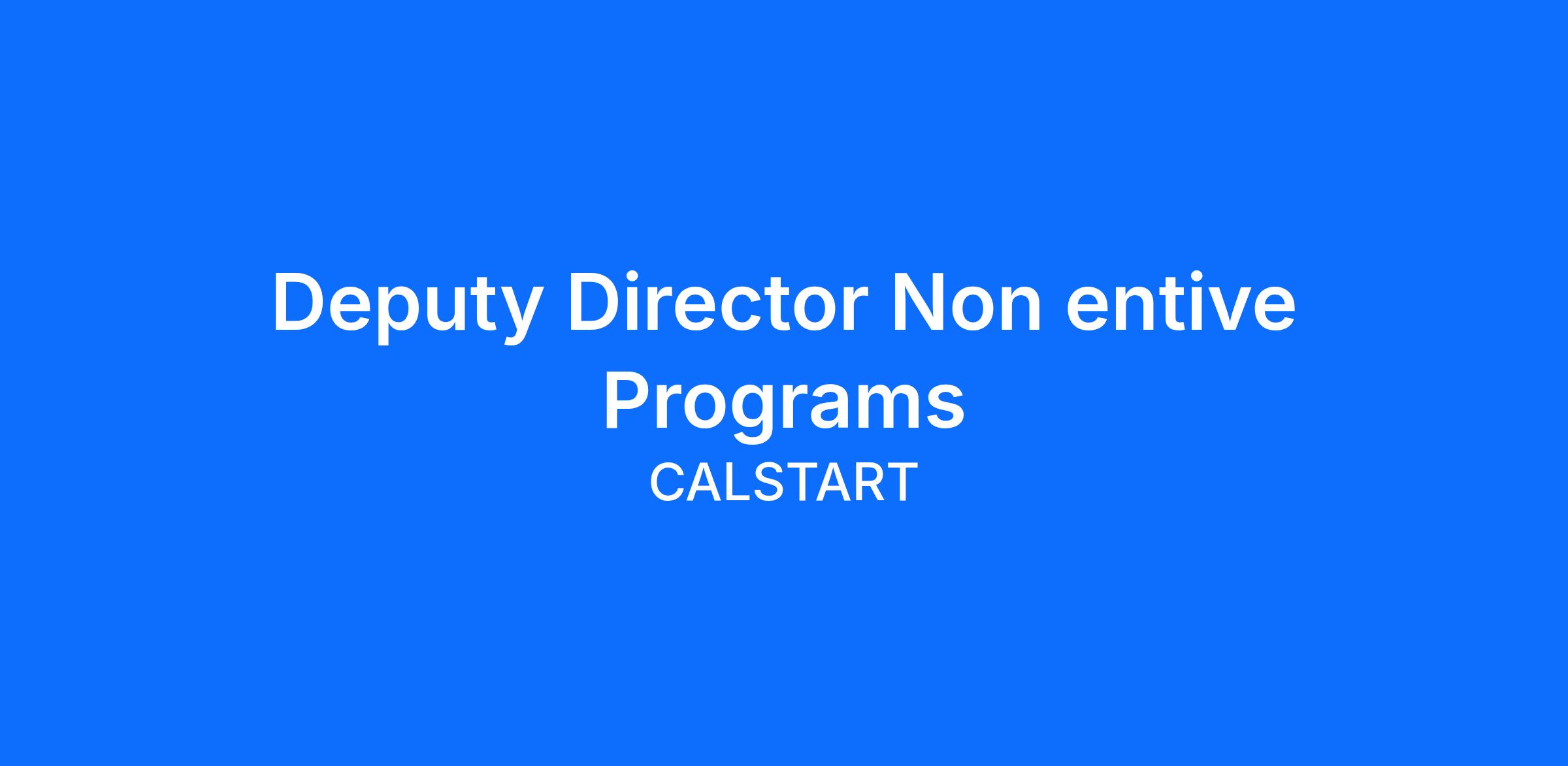 ââThe Deputy Director, Non-Incentive Programs plays a key leadership role within CALSTARTâs Clean Fuels & Infrastructure team, driving the execution and delivery of high-impact, non-incentive zero-emission transportation initiatives. Reporting to the Senior Director, Clean Fuels & Infrastructure, this role translates portfolio strategy into actionable workplans, oversees complex projects from planning through delivery, and ensures consistent, high-quality outcomes across grid integration, utility engagement, market development, and infrastructure initiatives. The Deputy Director serves as a central integrator across technical, policy, and market-facing teams while maintaining a strong focus on execution, accountability, and continuous improvement.