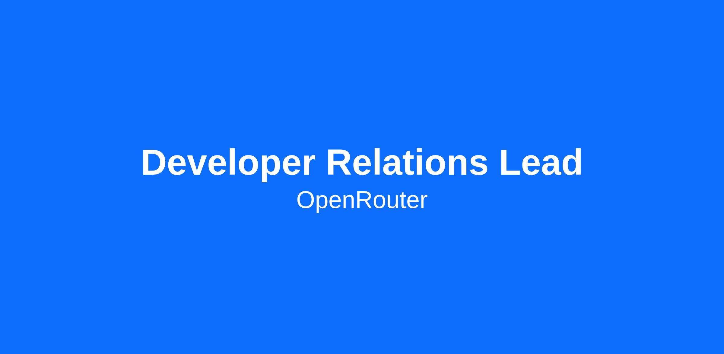Weâre looking for a Developer Relations Lead to become the trusted voice of developer education for OpenRouter. You will be the person developers think of when they think about learning how to integrate with OpenRouter and how to design, evaluate, and operate multi-model AI systems in production.