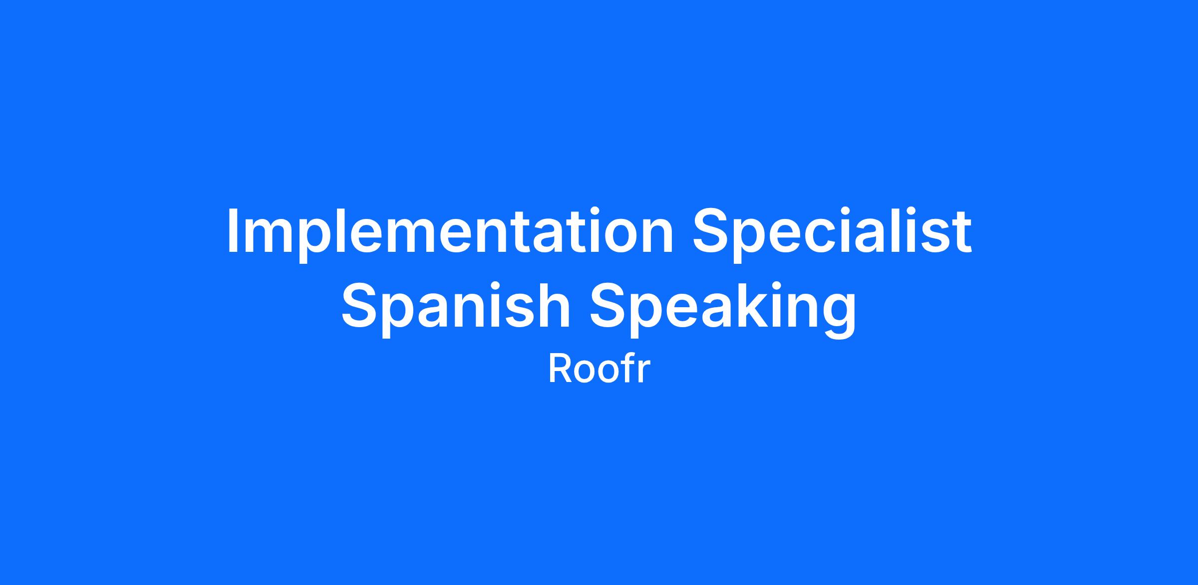 At Roofr, we're obsessed with our customers. We constantly gather feedback to shape, prioritize, and launch the products they truly need. That's what makes Roofr's CRM special. We started by building essential sales tools like aerial roof measurements and digital sales proposals. But when our customers asked for a simple, affordable way to manage and scale their entire businesses, we listened. So, we created a CRM that connects these solutionsâalong with payments, material ordering, and moreâinto a seamless, powerful platform. With a clear roadmap ahead, we're excited to continue expanding and leading the market with innovative products.We have an amazing culture, strong financials, and best-in-class company metrics. It's an exciting time to be part of an extraordinary startup that is already successful, yet still early enough to offer its team significant growth, equity, and the opportunity to make a real impact.This position is for an existing vacancy.Roofr is growing our Implementation Team, and we're looking for an experienced Onboarding or Customer Success Specialist to help design, deliver, and continuously improve a scalable customer onboarding experience that drives fast time-to-value and long-term product adoption.We onboard hundreds of new customers every month across multiple products, supporting them as they grow and expand their use of Roofr. This role is ideal for a customer-centric, results-driven professional who thrives in high-volume environments and believes great onboarding is the foundation for retention, expansion, and customer advocacy.Time-to-value, adoption, retention, and churn prevention are the name of the game, always with the customer's best interest at heart.What You'll Get to Do:- Own and manage multiple concurrent customer onboardings in a high-volume environment, balancing 1:1 training with scalable, group-based enablement- Guide c