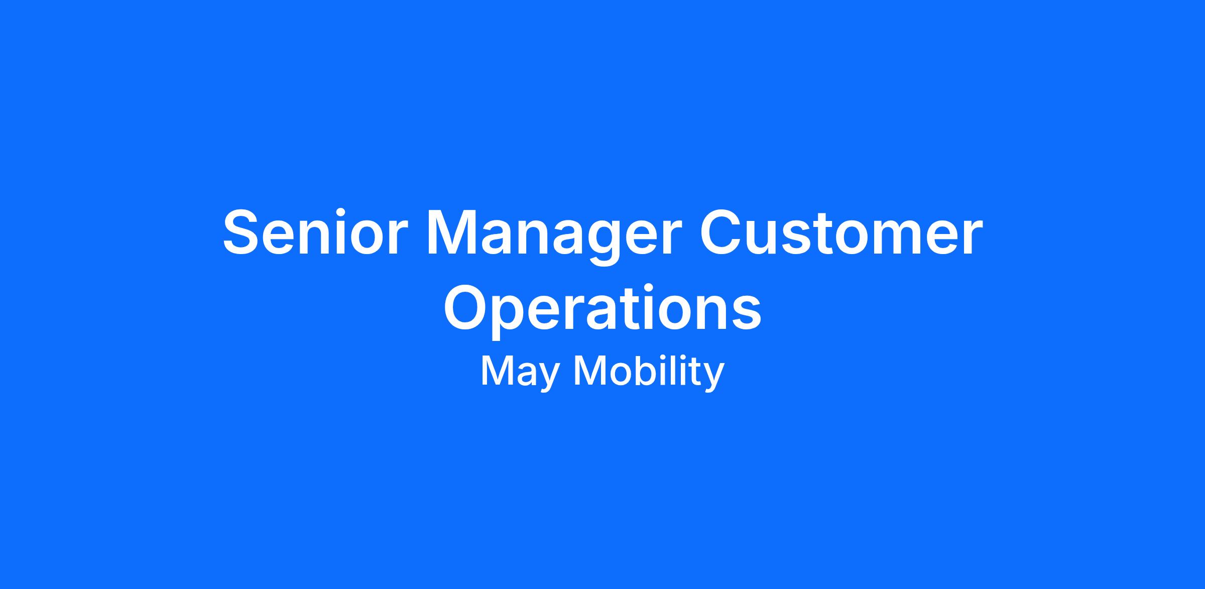 May Mobility is transforming cities through autonomous technology to create a safer, greener, more accessible world. Based in Ann Arbor, Michigan, May develops and deploys autonomous vehicles (AVs) powered by our innovative Multi-Policy Decision Making (MPDM) technology that literally reimagines the way AVs think. Our vehicles do more than just drive themselves - they provide value to communities, bridge public transit gaps and move people where they need to go safely, easily and with a lot more fun. We're building the world's best autonomy system to reimagine transit by minimizing congestion, expanding access and encouraging better land use in order to foster more green, vibrant and livable spaces. Since our founding in 2017, we've given more than 300,000 autonomy-enabled rides to real people around the globe. And we're just getting started. We're hiring people who share our passion for building the future, today, solving real-world problems and seeing the impact of their work. Join us.Job SummaryThe Senior Manager, Customer Operations will oversee a team of 4-8 Site Managers and their respective deployments. This role is responsible for defining and driving strategic operational excellence, ensuring a safe and pleasant experience for our users, and delivering measurable impact on company-wide financial and efficiency goals.Essential Responsibilities⢠Ensure that operations follow